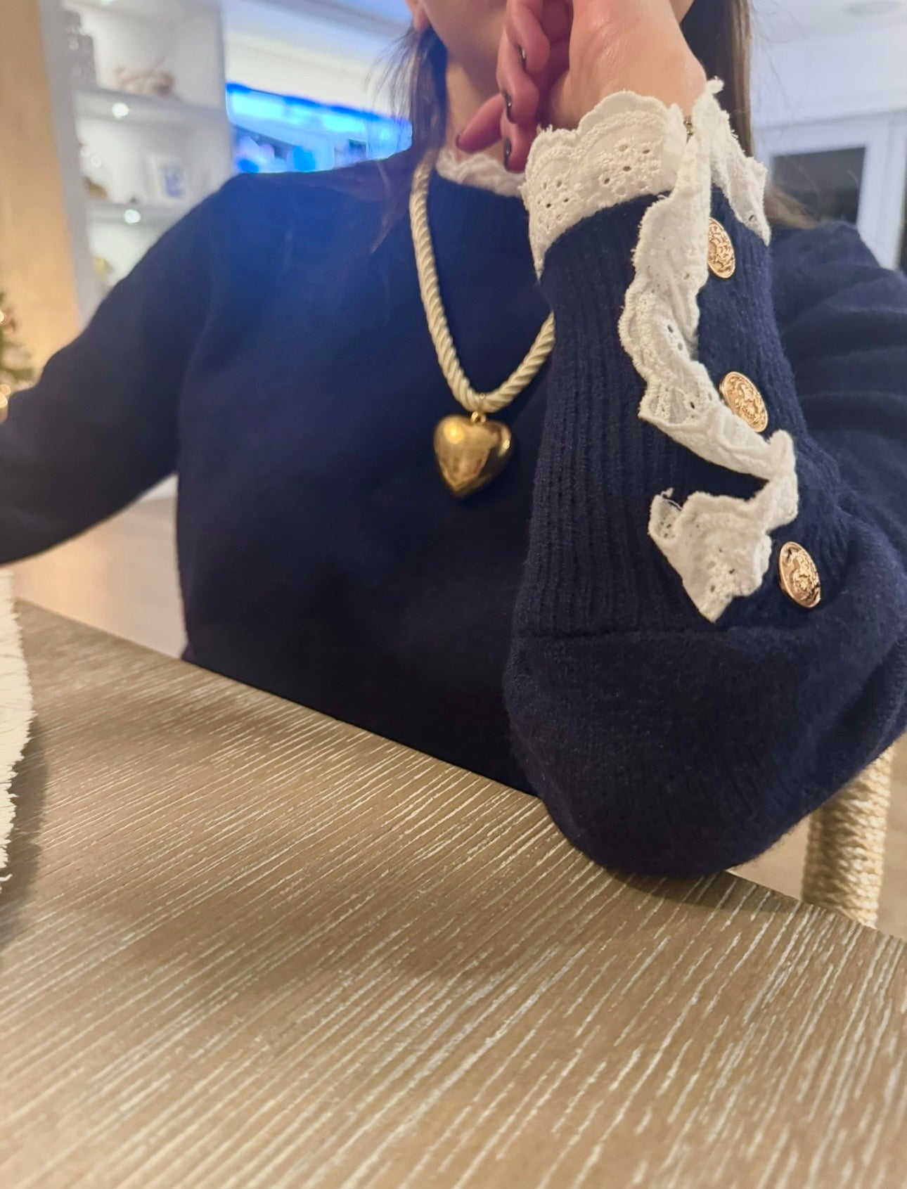 - Features a bold gold puff heart pendant as the standout centerpiece