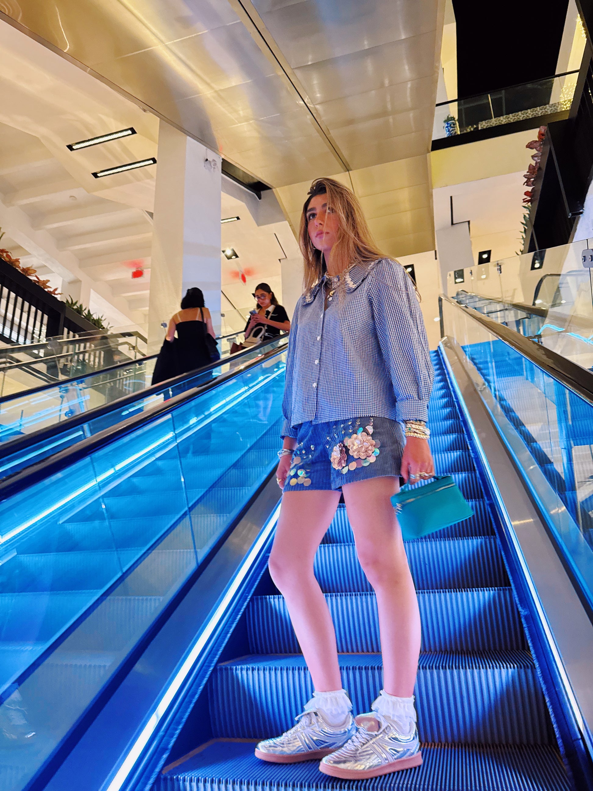 Make a statement with the Sequin Bloom Shorts, designed with shimmering floral sequin details for a playful yet polished look. Comfortable and versatile, they’re perfect for dressing up or down, adding a touch of sparkle to any outfit.
