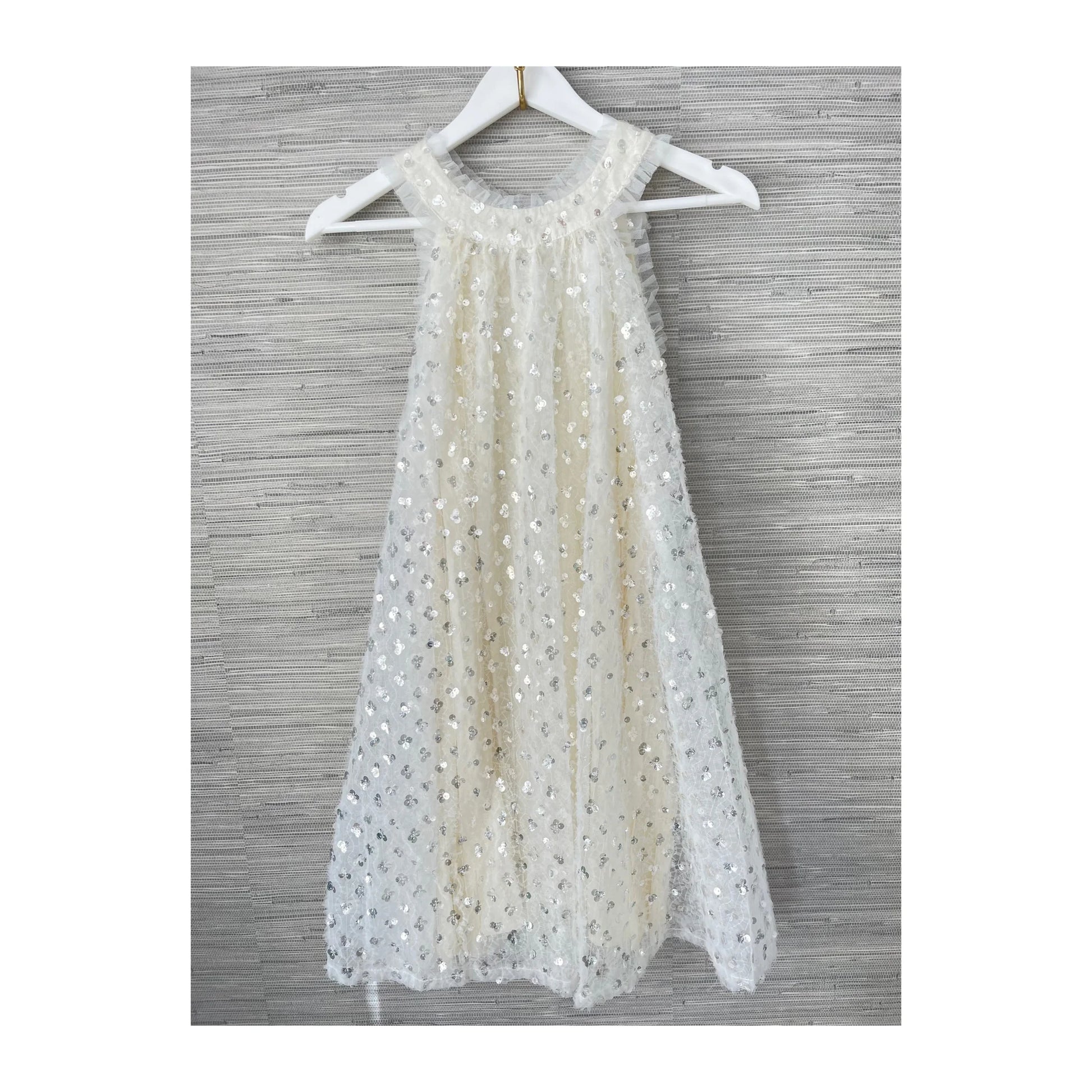 The Halo Dress has an overlay of tulle and a touch of subtle sequence throughout the dress.