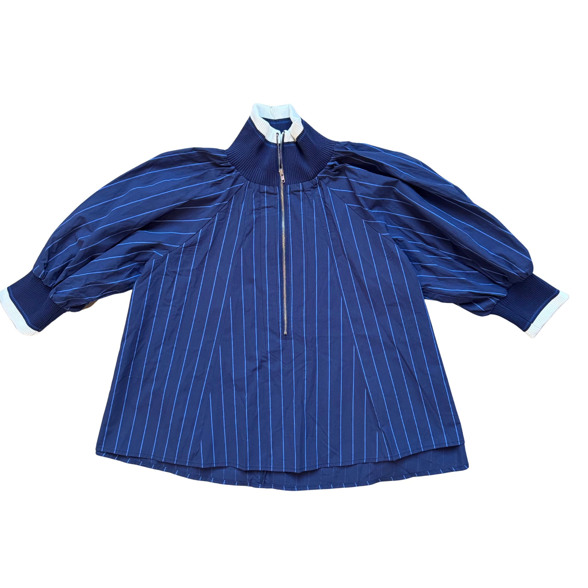 - Soft blue pinstripe blouse in a lightweight woven fabric